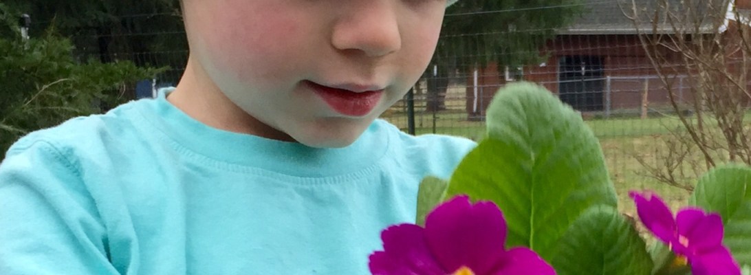 A couple of days ago, he announced, “I think Daddy should bring you some pretty flowers when he comes home.” (Aaron was on a business trip.)